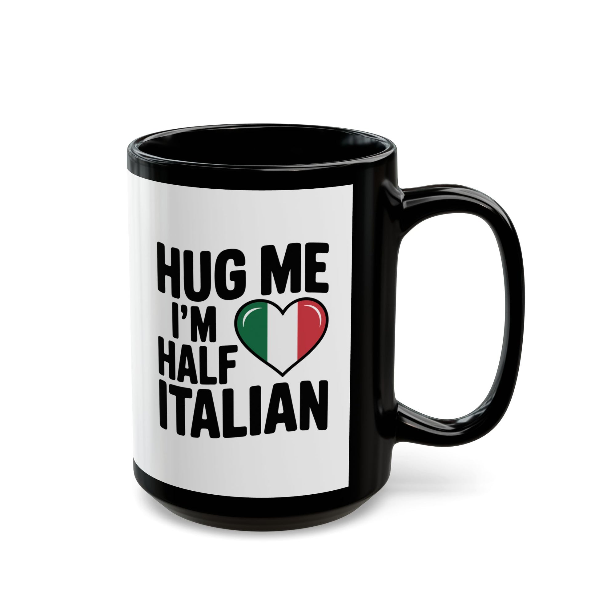 Hug Me I'm Half Italian Quote Black Mug (11oz, 15oz)