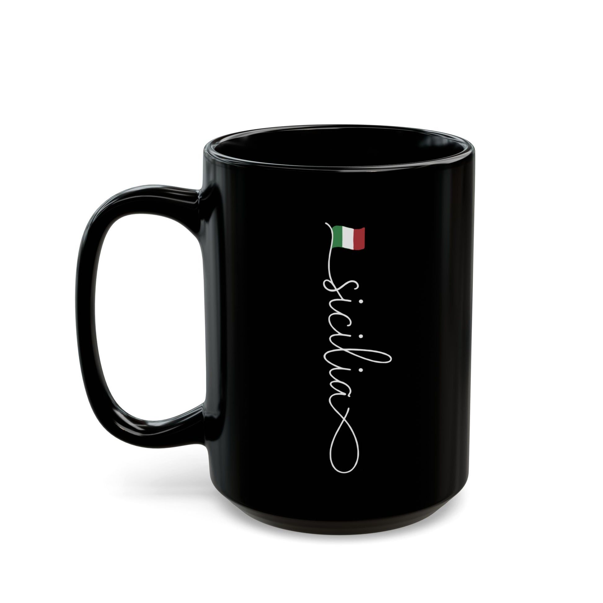 Vertical Sicilia Sicily Italian Flag Black Mug (11oz, 15oz)